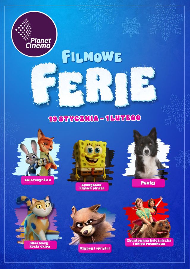 Spędź ferie w Planet Cinema! Z nami nie będziesz nudzić się w pogodę i niepogodę. Specjalnie na czas przerwy od szkoły przygotowaliśmy bogatą ofertę dla widzów w każdym wieku.