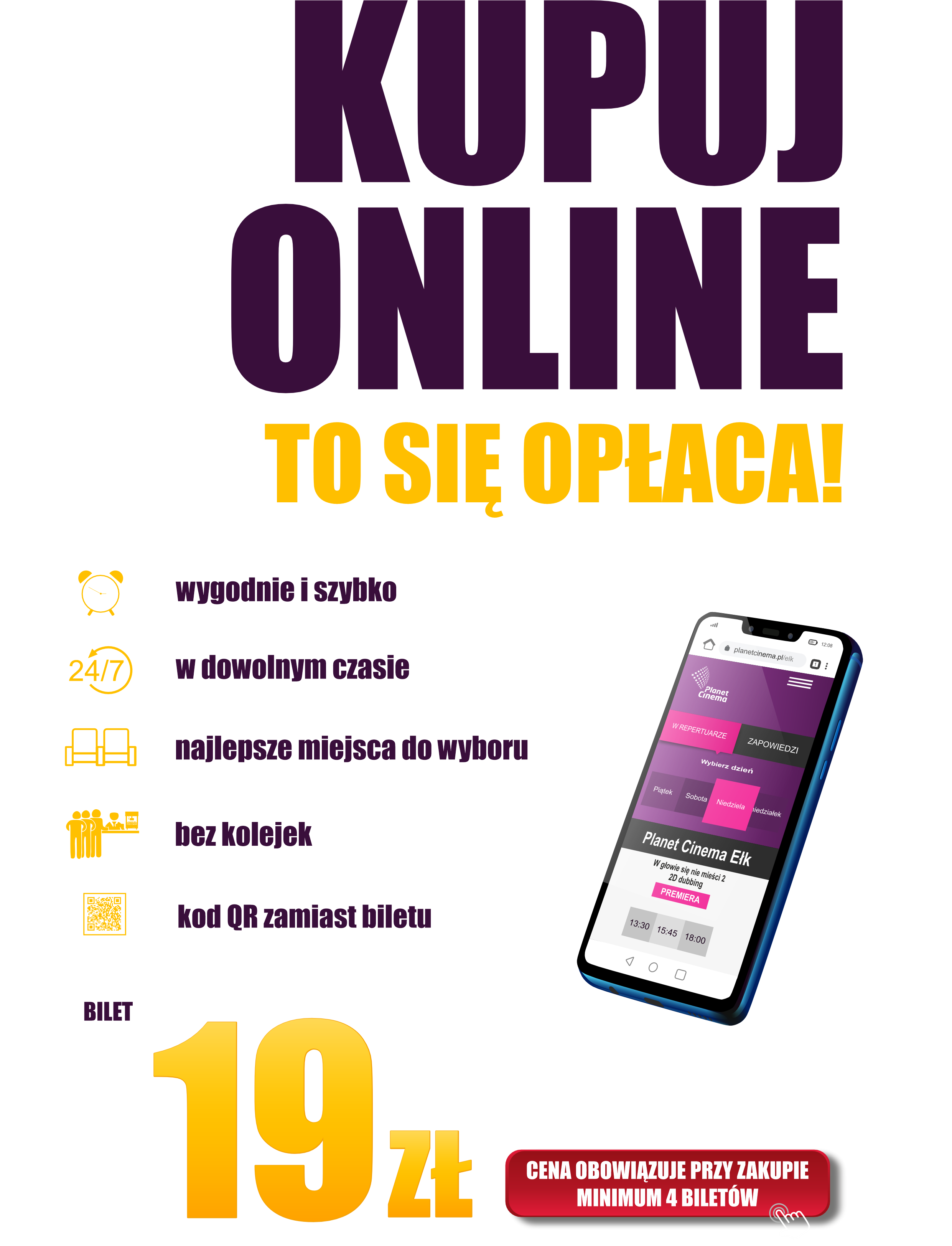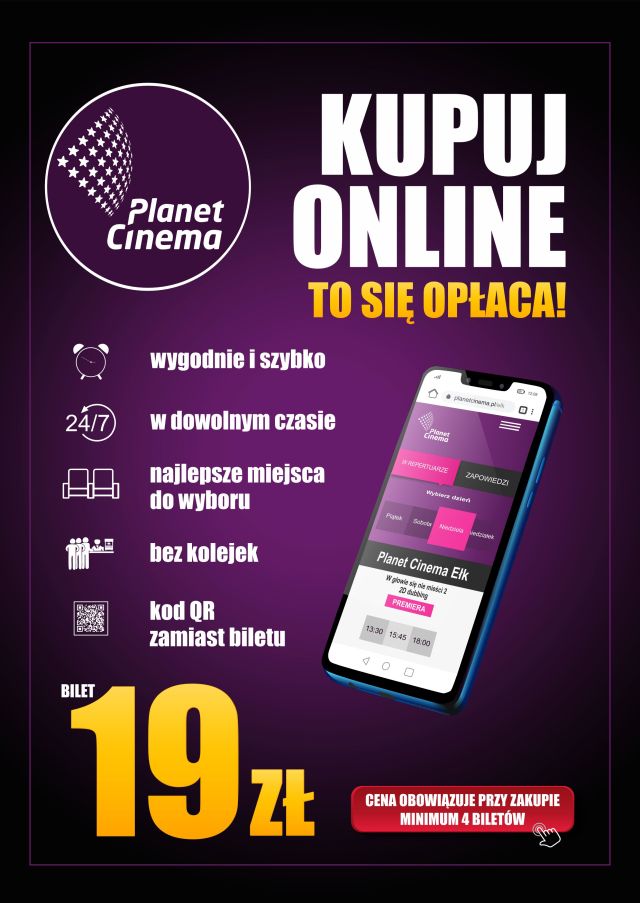 kino Planet Cinema zachęca do zakupu biletów online poprzez stronę: www.planetcinema.pl